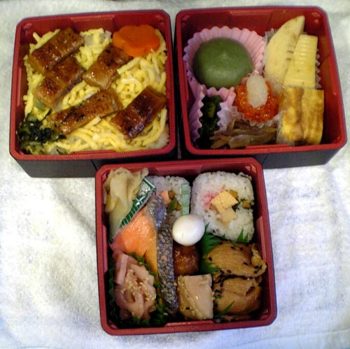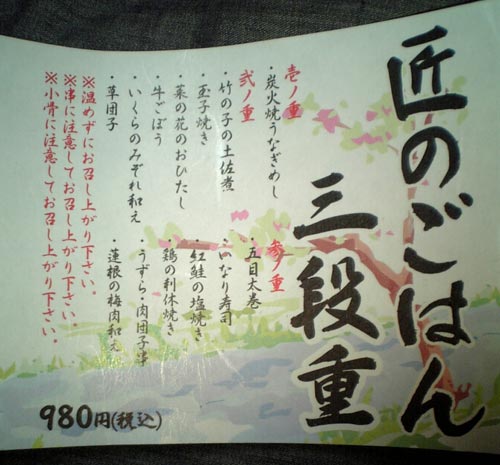 帰りは、競技場の売店で、勝利記念(実は売れ残り?)のため定価980円、売店ではいつもは800円で販売しているという豪華三段重を半額の400円で買い、まったりと各駅停車で味わいながら帰りました。